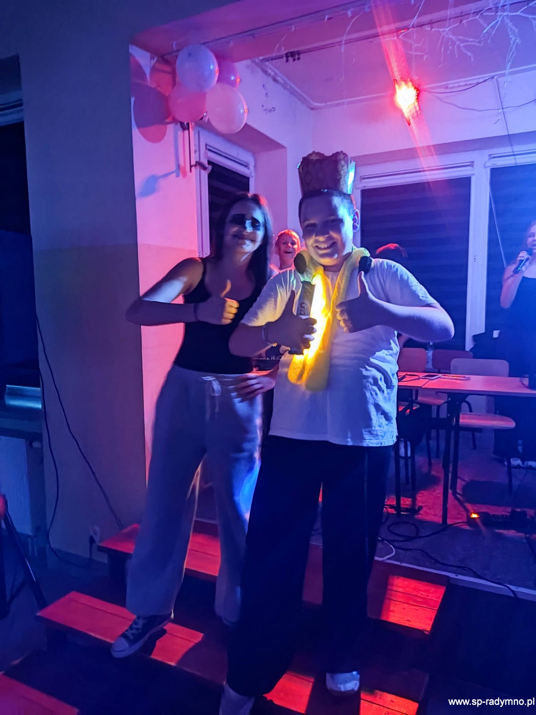 W środę, 8 października, odbyła się dyskoteka z okazji Dnia Chłopaka. Najpierw na parkiecie szaleli młodsi uczniowie. Chętnie tańczyli i brali udział w zaproponowanych zabawach. Wśród nich wyróżnili się szczególnie Natalka Łuc z 5b oraz Kuba Światlak z 6b i to oni zostali wybrani królową i królem dyskoteki. Klasy 7 i 8, w nieco mniejszym gronie, pojawiły się w drugiej części imprezy. Tu także dwie osoby zasłużyły na szczególne wyróżnienie - Magda Solarczyk z 7a oraz Fabian Farbaniec z 8c, to właśnie do nich trafiły korony. Młodzież świetnie się bawiła, po skończonej dyskotece szybko posprzątała i wróciła do domu. Kolejna dyskoteka już niedługo, widzimy się na Andrzejkach!