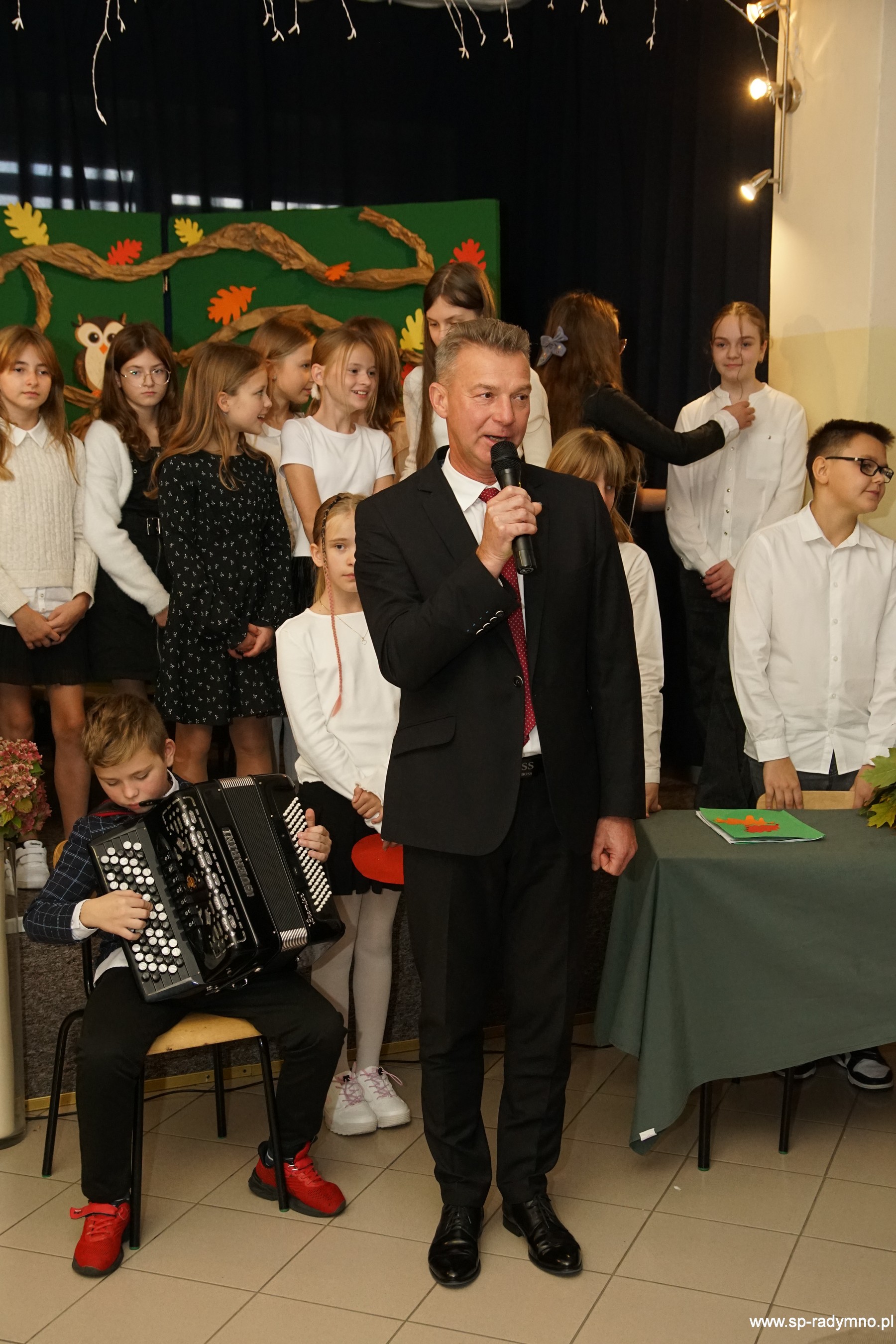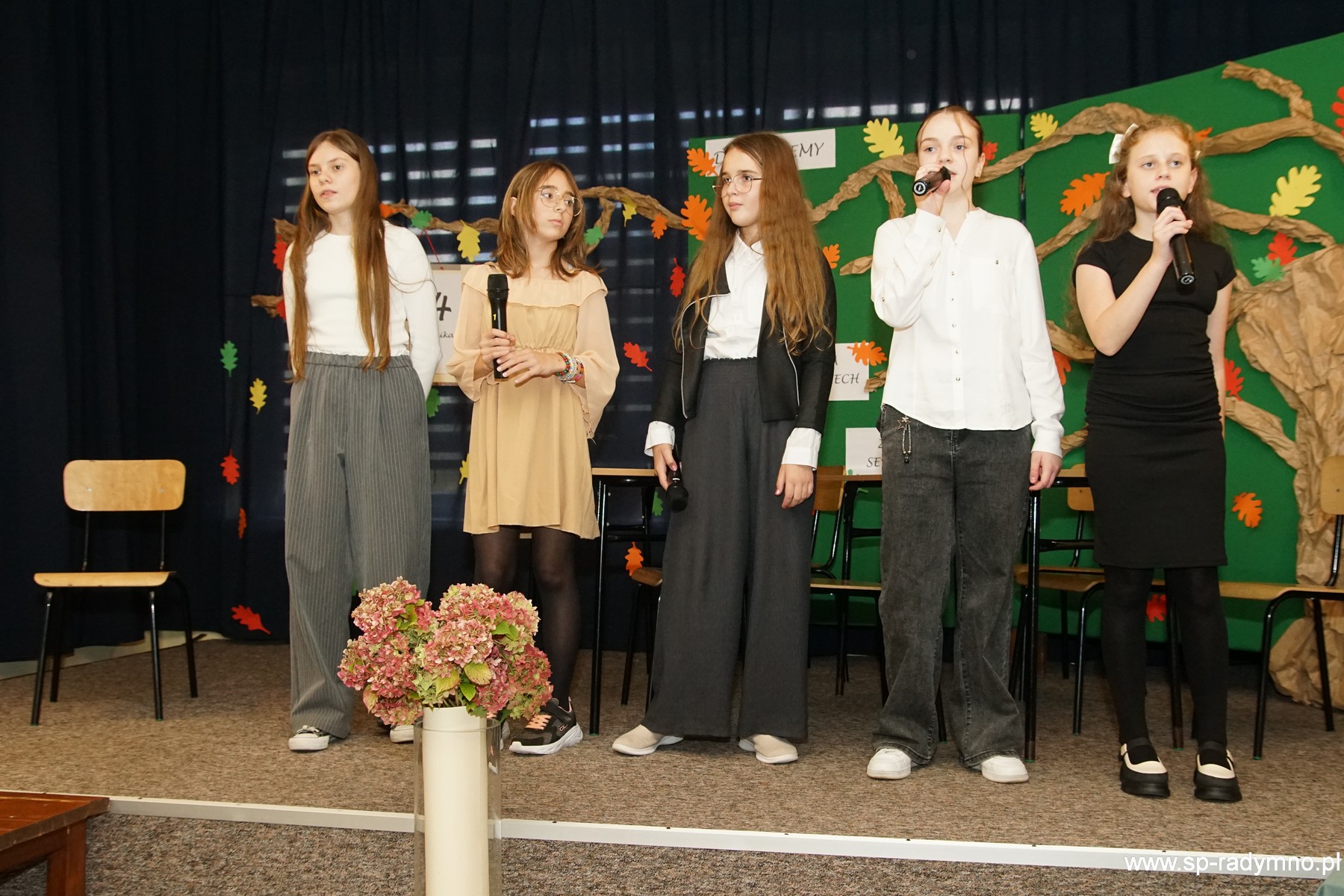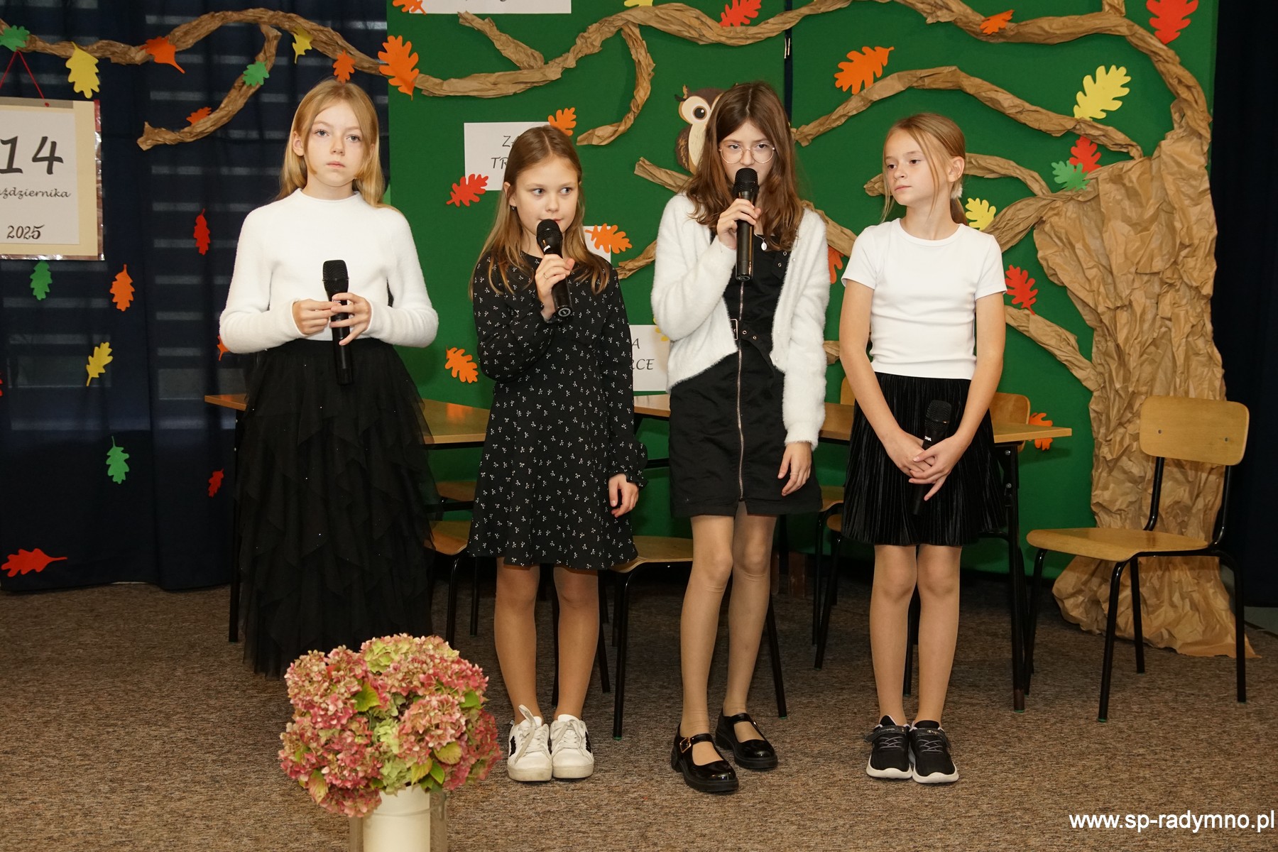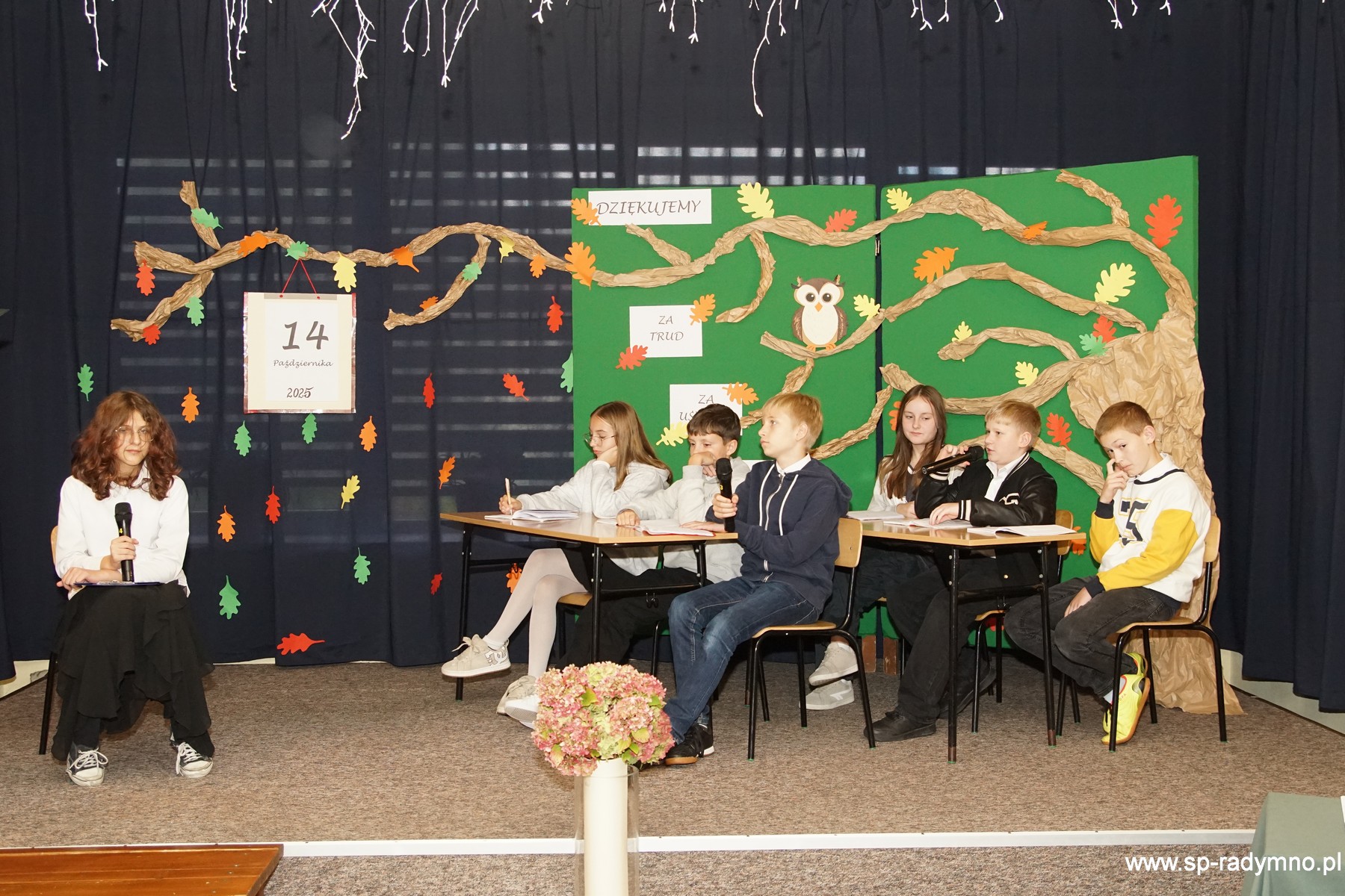 Życzenia, wiersze, piosenki, upominki i kwiaty towarzyszyły nam podczas tegorocznego Dnia Edukacji Narodowej. Uczniowie klas 4-6 pod czujnym okiem pani Ewy Brody, pani Elżbiety Koralewicz - Bagińskiej i pani Anny Pacek przygotowali akademię z okazji tego szczególnego dnia. Było wzruszająco, nostalgicznie i wesoło. Oprócz miłych słów od młodzieży grono pedagogiczne usłyszało życzenia od pana dyrektora Pawła Kalisza, pani sekretarz Zofii Kawałek oraz przewodniczącej Rady Rodziców pani Edyty Tancer. Samorząd uczniowski podziękował nauczycielom i pracownikom szkoły za ich pracę i serce. Dzień Edukacji Narodowej, zwany potocznie Dniem Nauczyciela, to święto całej społeczności szkolnej. To miły czas dla uczniów, nauczycieli i pracowników szkoły.