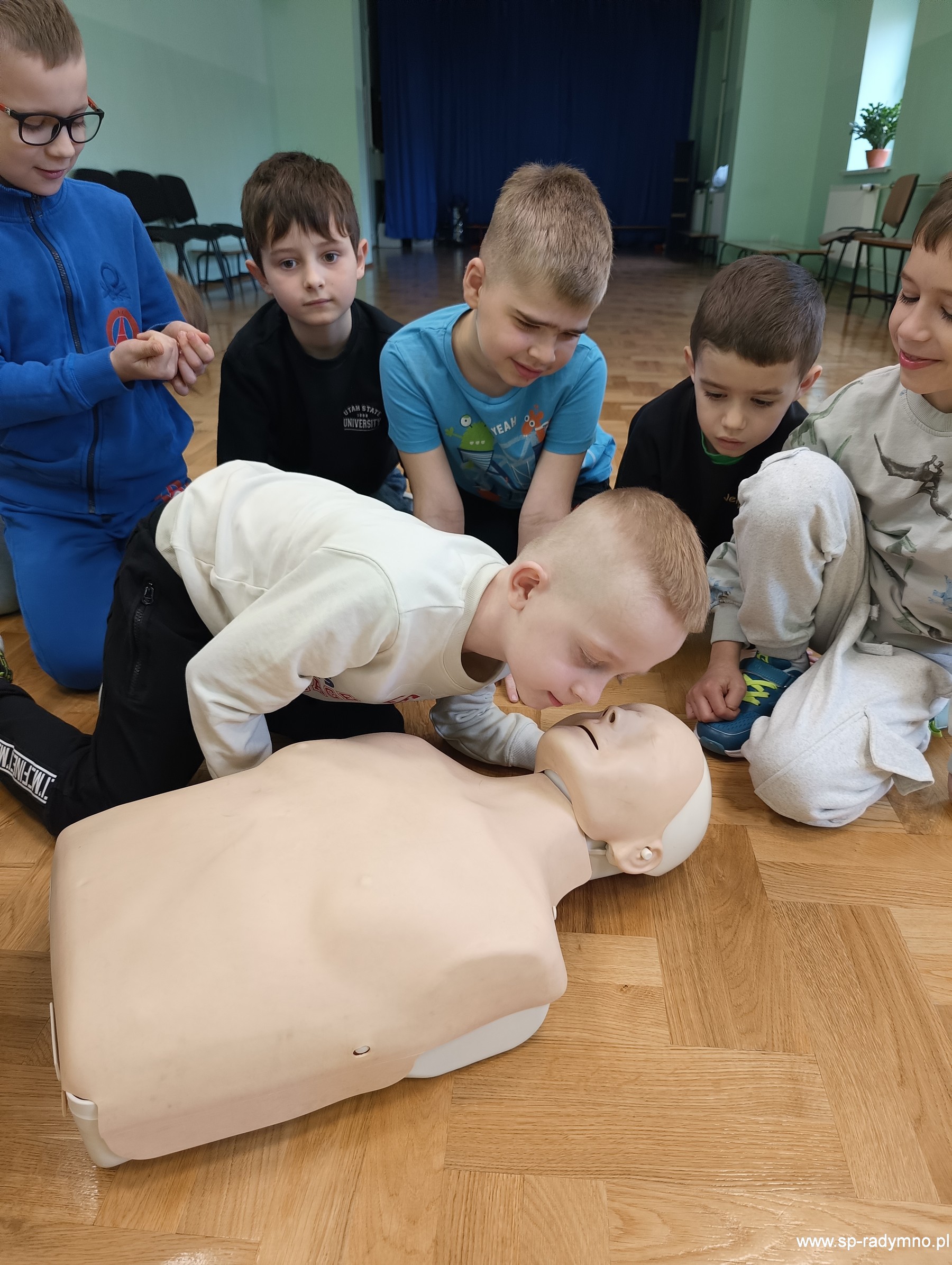 W wydarzeniu wzięli udział uczniowie klasy IIC, III A oraz III B, którzy z ogromnym zaangażowaniem i energią wykonywali uciśnięcia klatki piersiowej na fantomach.