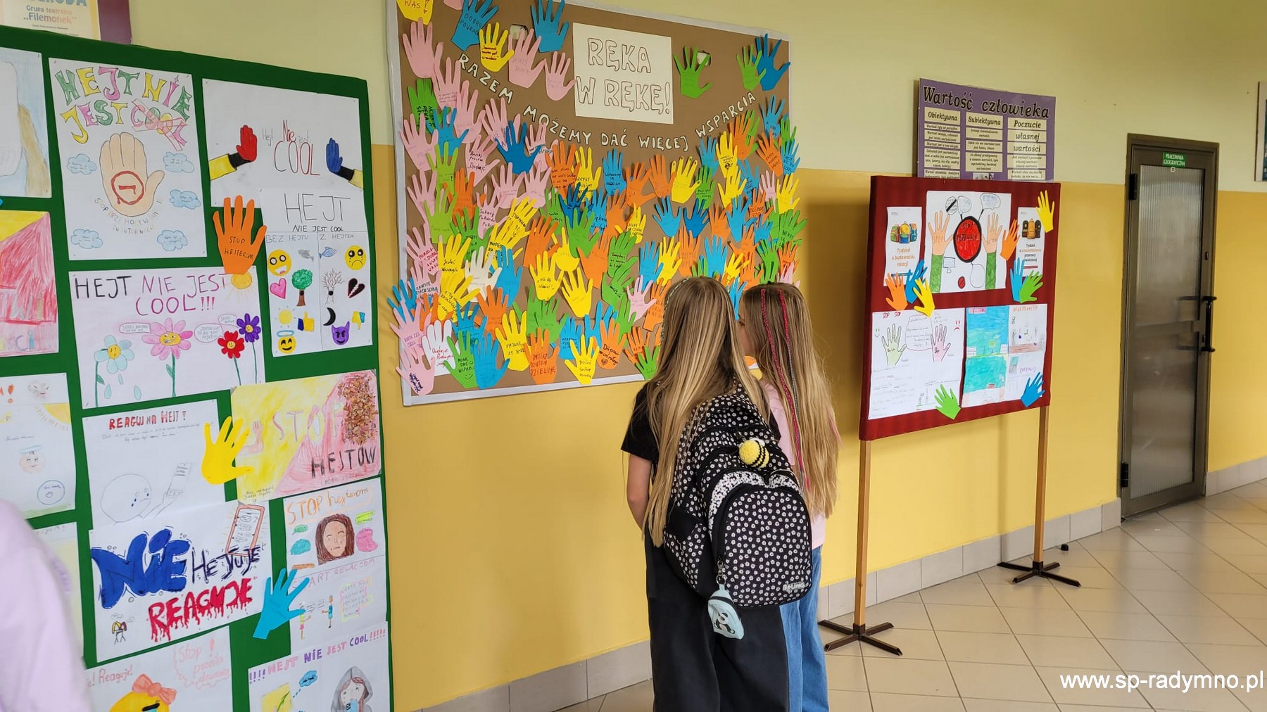 W dniach 29.09 – 03.10 w naszej szkole odbył się tydzień działań profilaktyczno-wychowawczych pod hasłem „Ręką w rękę – razem możemy dać więcej wsparcia”, poświęcony przeciwdziałaniu przemocy rówieśniczej, hejtowi i wykluczeniu. Uczniowie klas IV–VIII brali udział w różnorodnych formach aktywności – od działań plastycznych, przez debatę, po zajęcia warsztatowe z psychologiem.