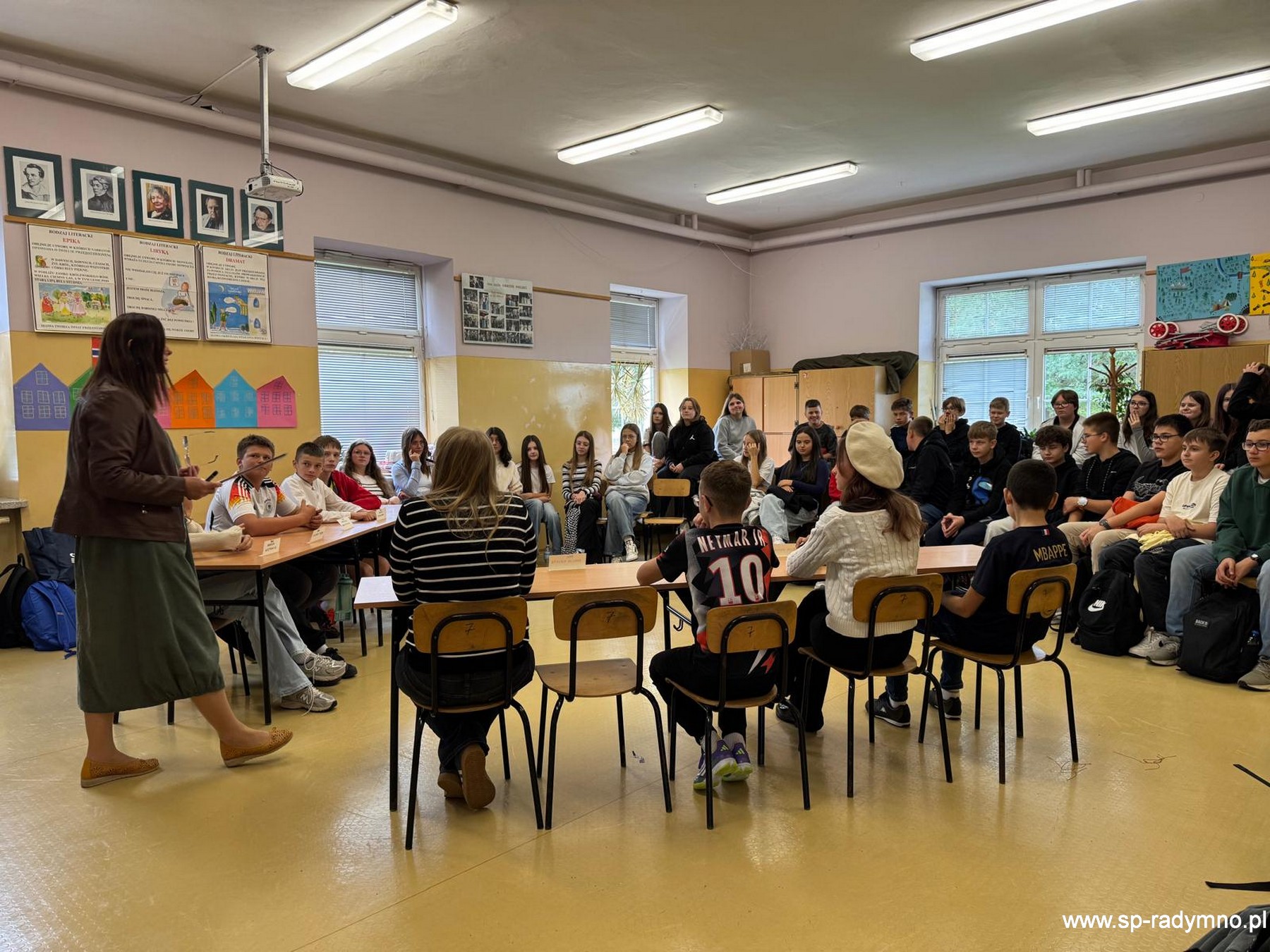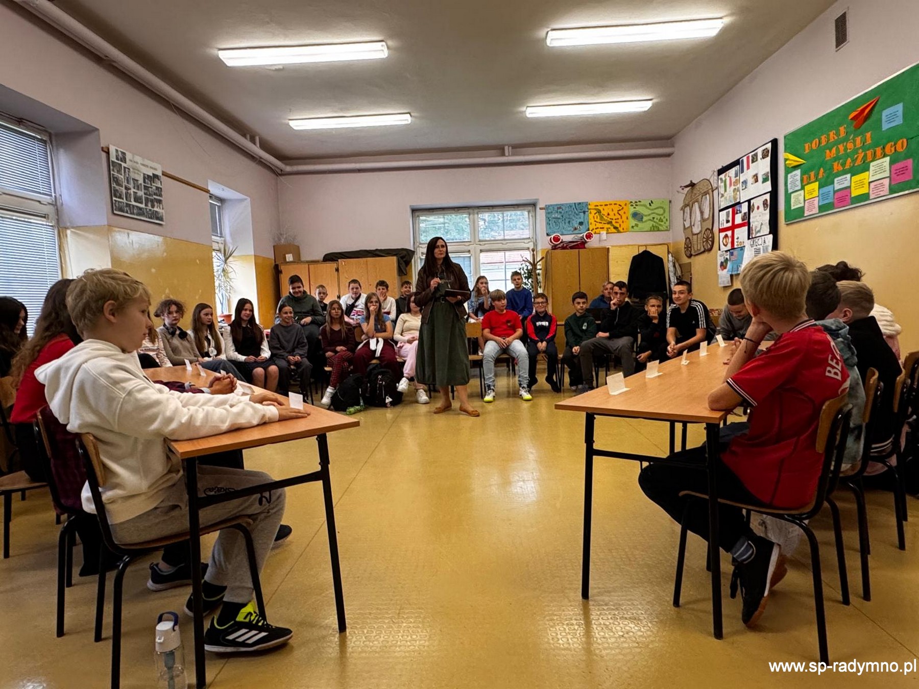 W środę młodzież klas VIII uczestniczyła w zajęciach z psychologiem szkolnym p. Magdaleną Pawłowską pt. „Jak budować zdrowe relacje”. Rozmawiali o granicach, szacunku i empatii w kontaktach rówieśniczych.